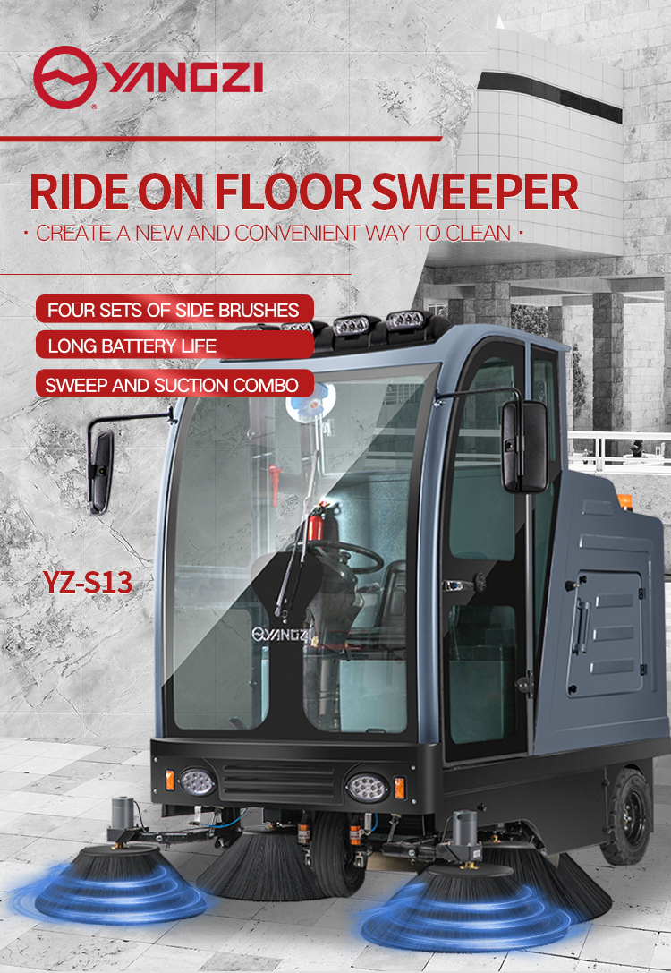 Yangzi S13 Fully Closed Electric Automatic Park Road Ride On Floor Sweeper Machine