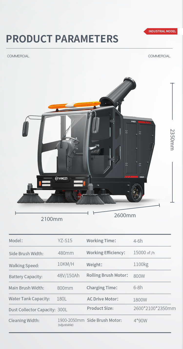 Yangzi S15 Road Cleaning Machine Outdoor Street Road Sweeper Ride on Floor Sweeper
